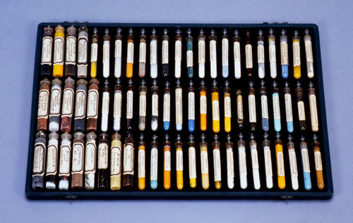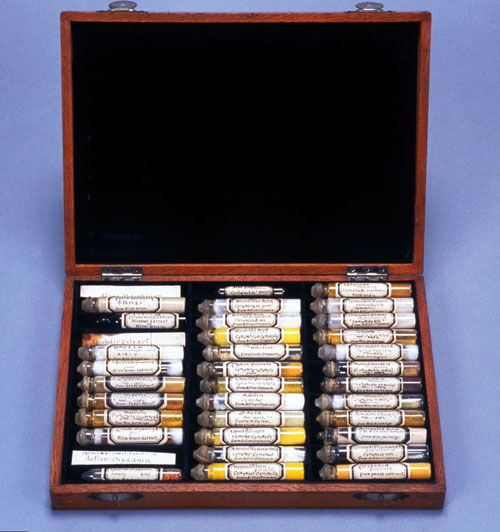 ビタミン・アミノ酸などの成分標本、実験器具や、ビタミンの有効性を試験するために用いられた動物標本などの標本類約500点、梅太郎の研究論文別刷り、写真(実験データ写真を含む)や、図書・書籍などの文献資料類約1200点があります。農産物から抽出されたオリザニンが封入されたアンプルも含まれています。